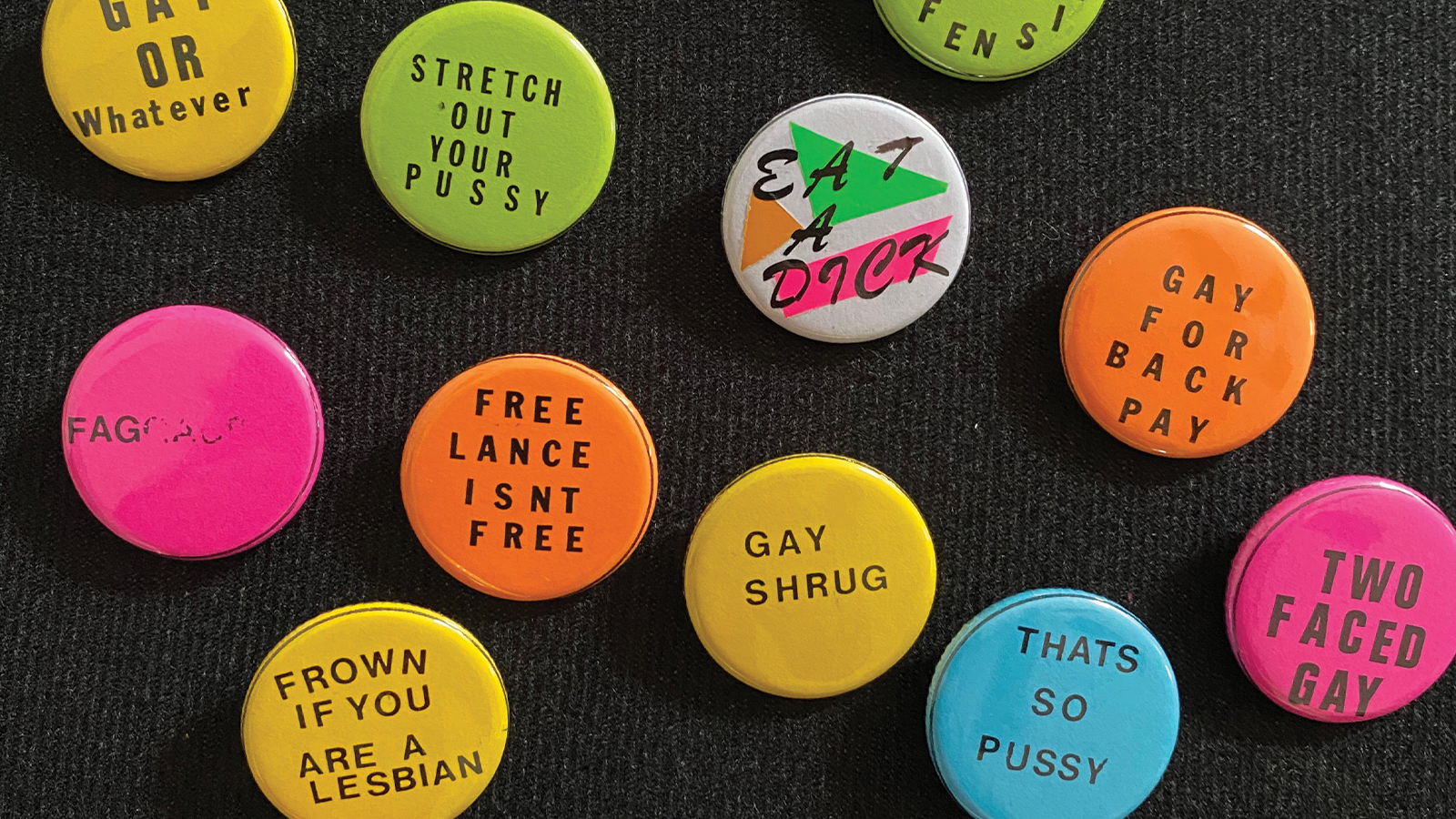 Through a dumpster dive of America’s gay archives garbage, art duo FFTwinz gleaned all the gay artifacts they had forsaken to bring you GAY DREGS: ARCHIVE REJECTS. A room of gay plunder: Burnt out vibrators, petty slogans, dehydrated urine samples from the famous and dead, ball gag reading lights, ratty tees and more! We have no pride and neither should you!